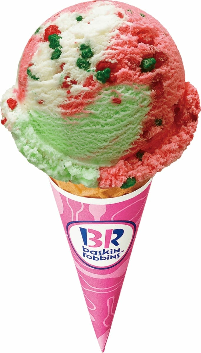 「ポッピン ドリーム」は、ホワイトチョコ風味とミント風味が特長の「ポッピンシャワー」に、赤いミックスベリーアイスクリームを加えた、甘さと酸味のバランスが絶妙なアイスクリームです。